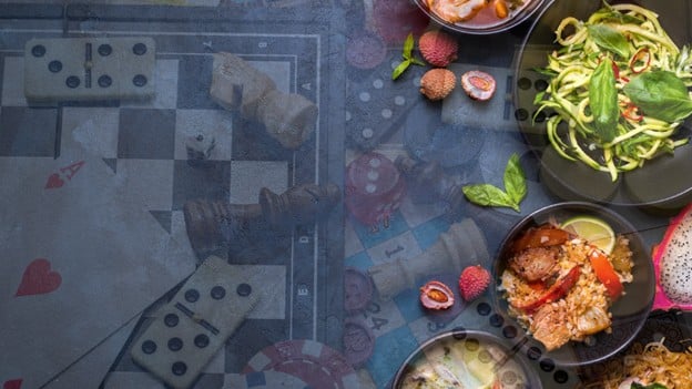 Men her skal man tænke sig om. Retten skal kunne spises uden for meget besvær med bestik, og den må ikke være for fedtet eller flydende. Intet ødelægger en god spiloplevelse som sauce på kortene eller fedtede fingre, der sviner spillebrættet. Maden skal altså mætte, men aldrig stoppe spillet – den skal støtte stemningen, ikke bryde den.